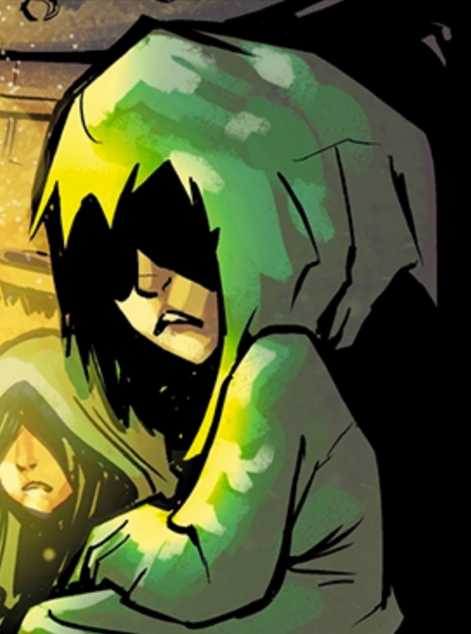 Впервые мальчик появляется в первом выпуске официальной серии комиксов Little Nightmares. Именно он был первым, кто заговорил с Шестой. Когда дети начали расспрашивать Шестую о её предыстории, та предпочла промолчать, из-за мальчик в зелёном предположил, что она не помнит свою историю, и поэтому предложил девочке помочь вспомнить. Во втором выпуске серии комиксов он вместе с другими детьми выслушал историю горбатой девочки. | |