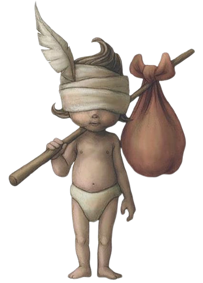 Малыш — очень маленький ребёнок, одетый в подгузник. На голове, поверх каштановых волос, он носит прикрывающую его глаза повязку, в которую воткнуто перо. Малыш носит с собой красновато-оранжевый мешок, привязанный к палке, которую он держит на плече.