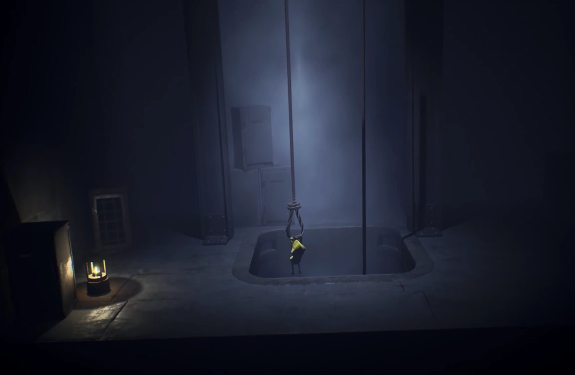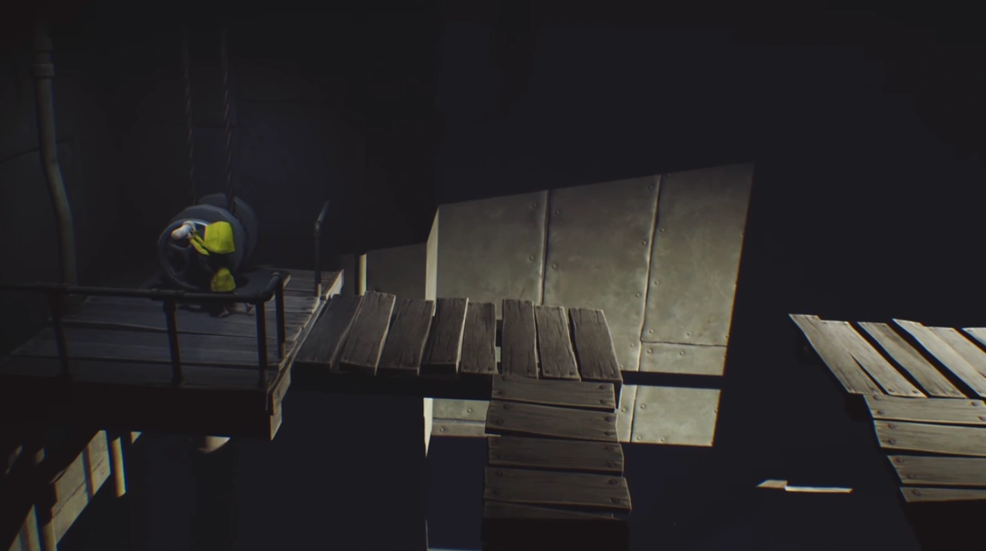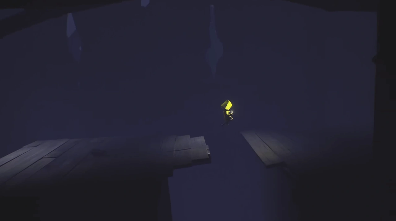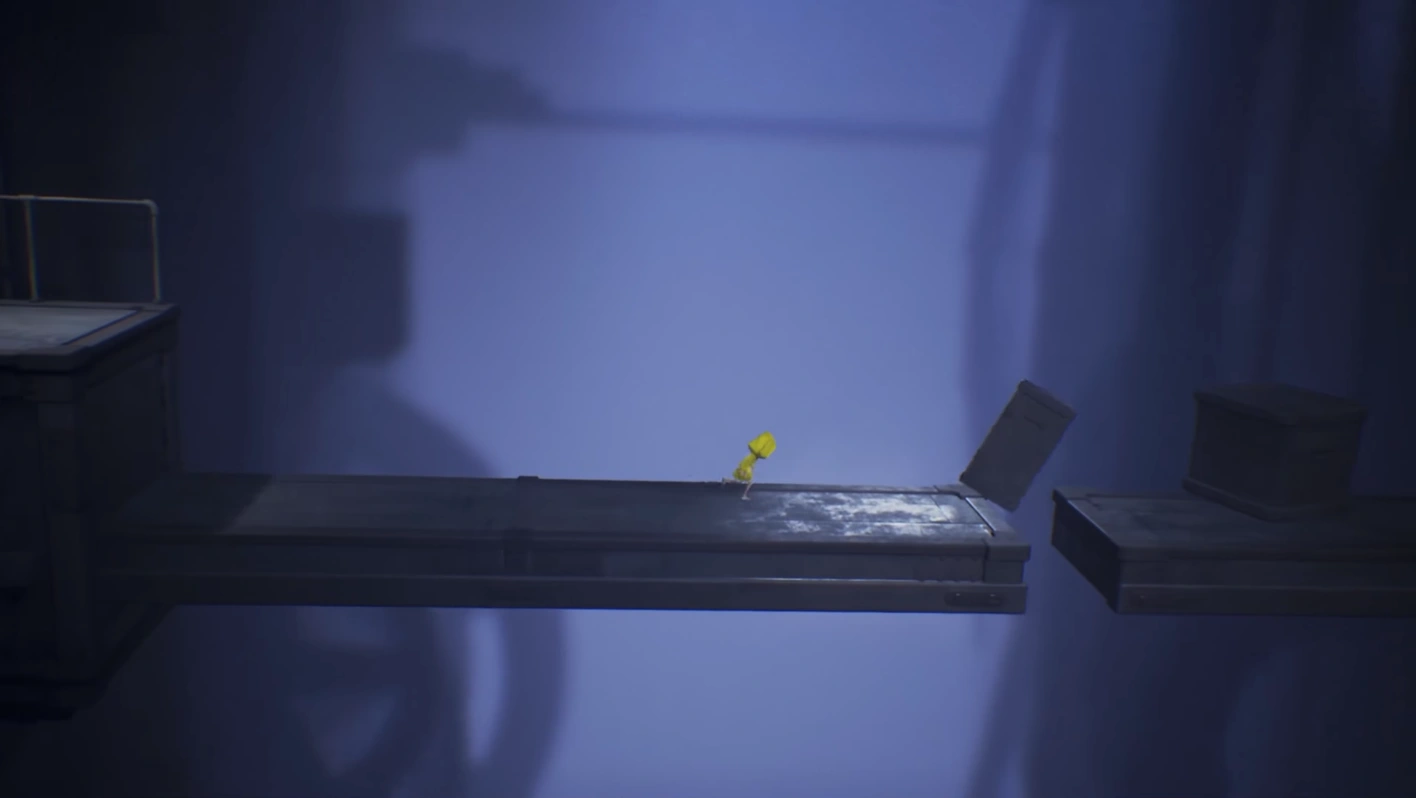 Поднявшись на вершину деревянной конструкции, бегите вдоль её крыши и перепрыгните через щель, избегая пиявок, падающих с труб над девочкой. Затем вы доберётесь до маленькой комнаты с рубильником, на который нужно нажать, чтобы открыть следующую дверь. Перепрыгнув через брешь, вы подойдёте к заколоченному дверному проёму, нижняя доска которого должна быть вручную изъята, чтобы Шестая смогла пролезть.