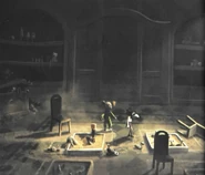 A dead Nurse, slumped over a chair.