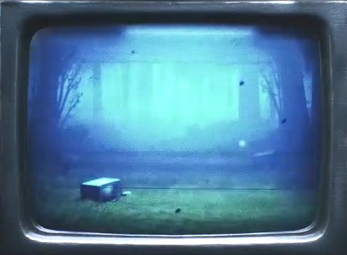 Mono in a field with a television.