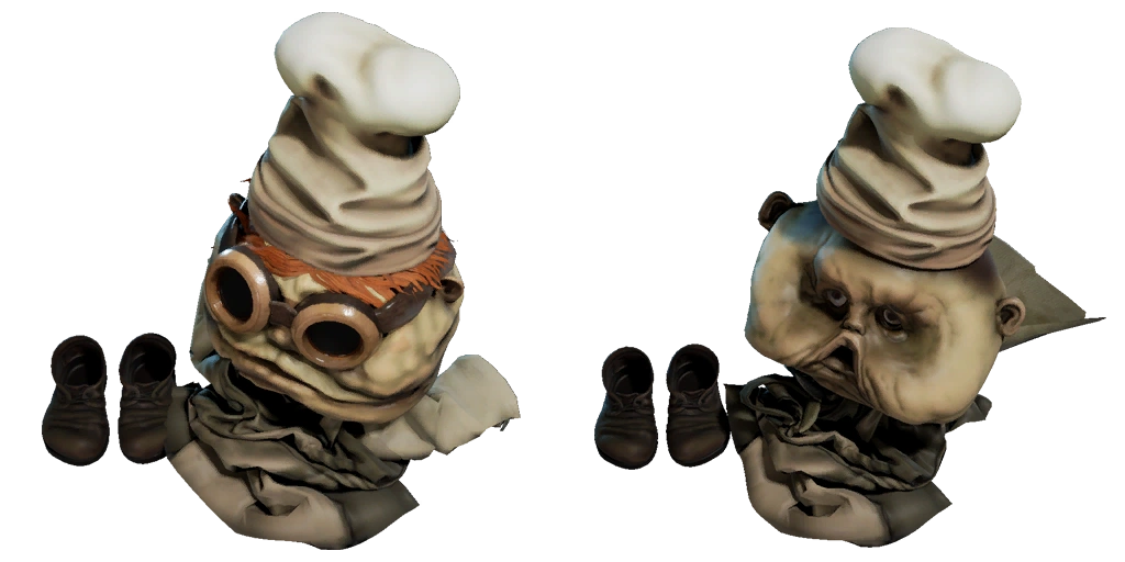 The Wax Bellman Mask. | A cut mask that resembles the face of the Wax Bellman, who was cut from Little Nightmares as well. |