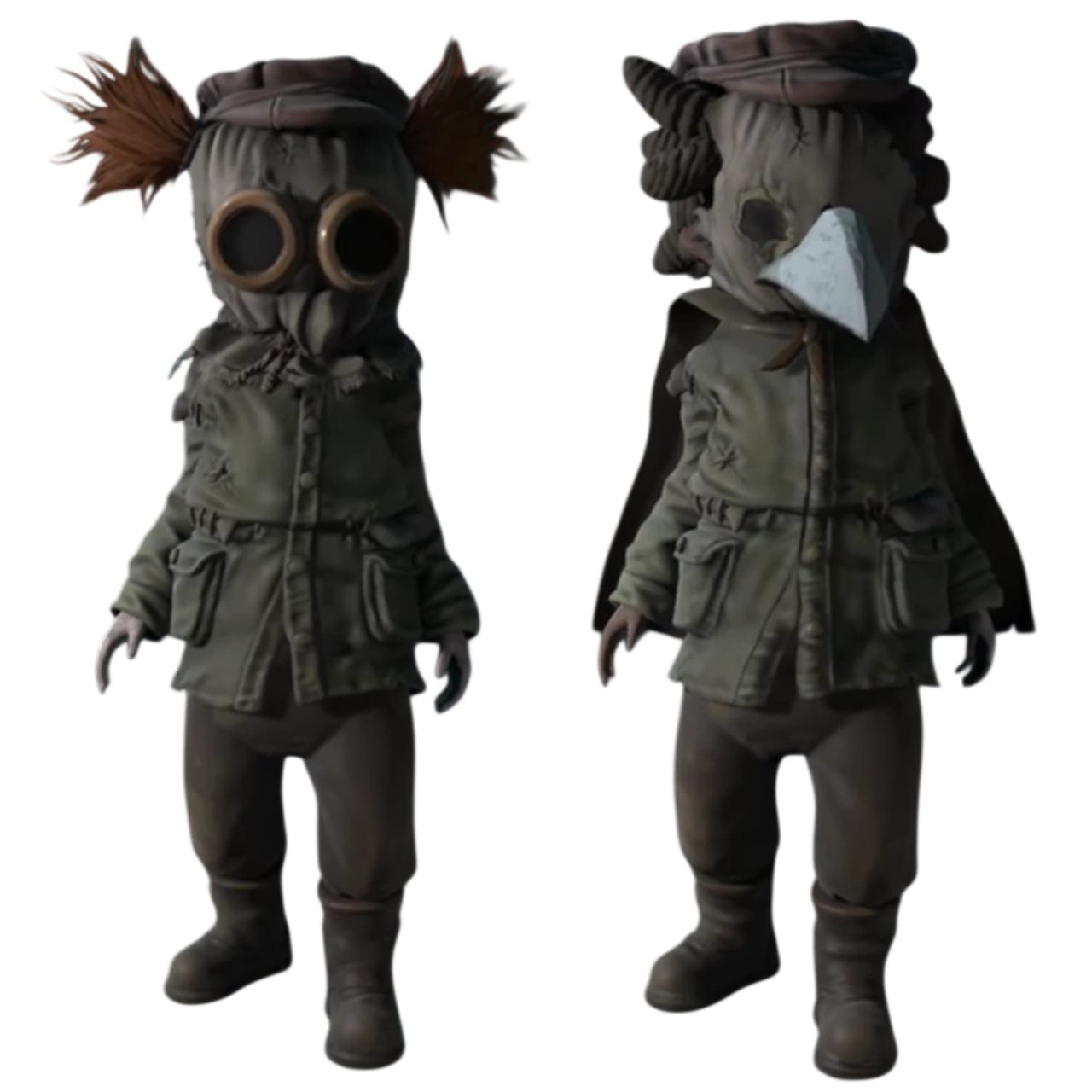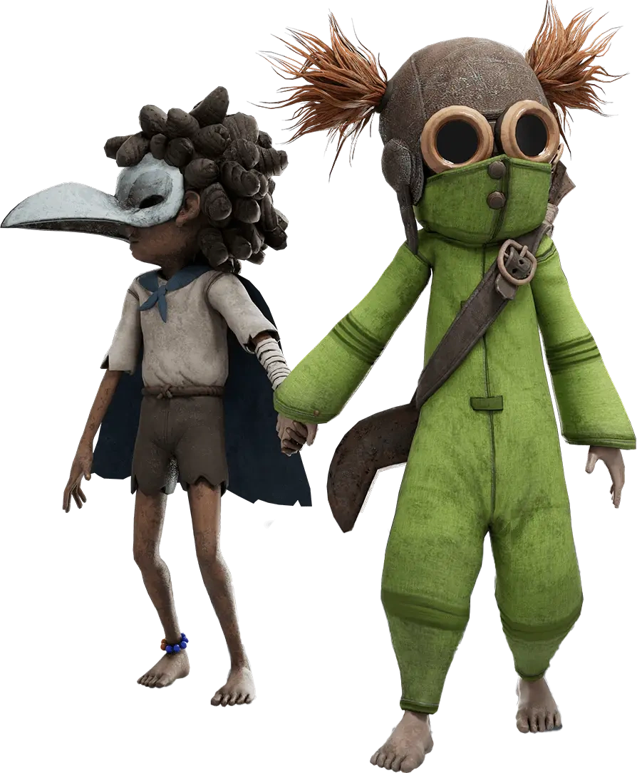 Klonoa and Ghadius. | Bring nostalgia and darkness together with these costumes. A tribute to the beloved classic, reimagined with a creepy twist for your journey through the Spiral. The Klonoa Costumes Set introduces two iconic figures from the KLONOA series into the eerie world of Little Nightmares III. Klonoa’s adventurous spirit and Ghadius’ menacing presence collide in a pair of distinctive outfits that capture both charm and unease. Wear these costumes to stand out as you explore unsettling environments and face the horrors of the Spiral. A nostalgic nod for long-time fans, and a fresh, haunting look for new adventurers.[8] | Free to download online. |