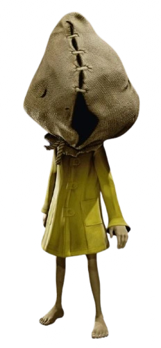 Dark Six. | ...a twisted reflection of the girl who escaped The Maw. Many questions remain about the identity of Dark Six. Is she an alternate reflection of Six, a haunted, corrupted reflection? Is she the same person, but darker, shaped by her fears and the horrors she’s witnessed? Or is she something completely different? Her silhouette remains unchanged, but something is different… The yellow is gone. What’s left is a cold echo - quiet, watching, waiting. Wearing this costume is more than a disguise. It’s a question: What happens when you stop running… and become what you feared?[4] | Bonus for pre-purchase of Little Nightmares III. Must be purchased. |